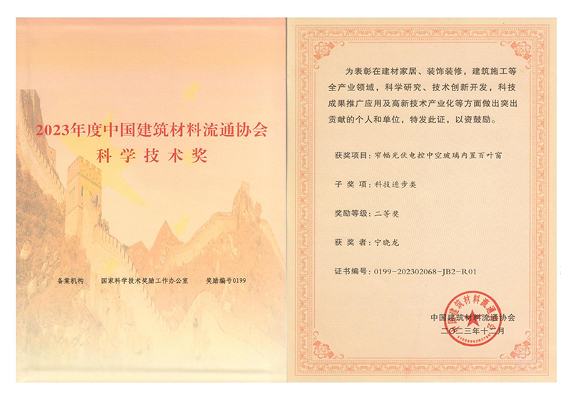 由宁晓龙先生自主研发的高可靠性手动、电动、光伏电控内置遮阳百叶中空玻璃先后荣获“区长质量奖”、“全国质量技术创新奖”、“科技进步一等奖”、“专利金奖”、“金轩奖”、“北极星奖”、“标准化科技创新奖”、“江苏精品”等诸多省部级权威奖项,关联企业还被多部委专威机构评为“中国内置遮阳百叶中空玻璃、“中国光伏电控内置遮阳中空玻璃产业化示范企业”、“中国诚信档案企业”、“全国内置遮阳百叶中空玻璃行业质量领先品牌”、“江苏行业名牌”、“中国房地产5A供应商”以及江苏省“专精特新小巨人企业”、“瞪羚企业”、“光伏内置百叶中空玻璃工程技术研究中心”和“绿色工厂”等称号。