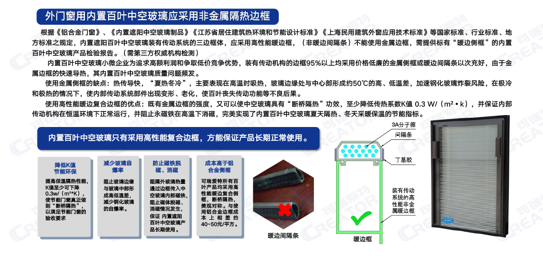 内置遮阳百叶中空玻璃腔体内部使用非金属暖边框与内部使用铝合金金属边框的优缺点及必要性。