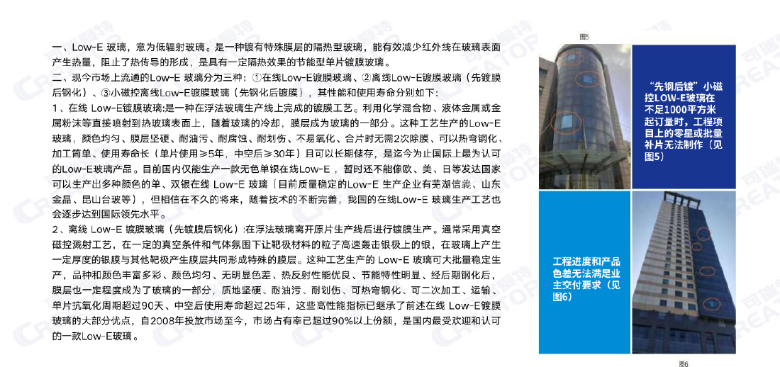 在线、离线、小磁控离线LowE(先钢化后镀膜)三种LowE玻璃的优缺点比较