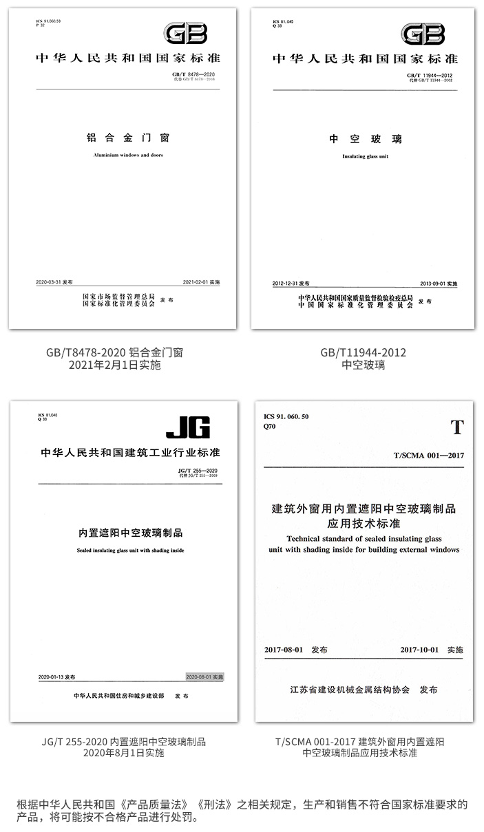 Built-in shading louver insulating glass products shall meet the following relevant standards